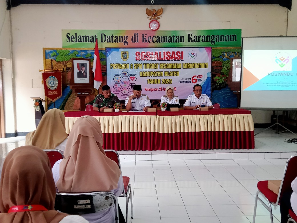 INDONNESIANEWS (Klaten)–Pemerintah Kecamatan Karanganom, Klaten, menggelar Sosialisasi Posyandu 6 SPM (Standar Pelayanan Minimal) tingkat kecamatan Karanganom Kabupaten Klaten Tahun 2026. Acara ini