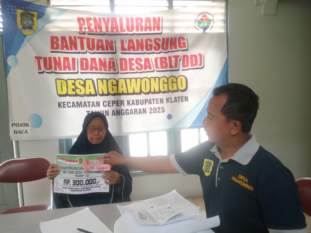 INDONNESIANEWS (Klaten)–Sebanyak 38 warga kurang mampu di Desa Ngawonggo menerima Bantuan Langsung Tunai (BLT) sebesar Rp300.000 per orang. Penyaluran BLT tersebut dilaksanakan di Balai Desa setempat pada Jumat (31-10-2025). Kepala Desa Ngawonggo, Noor Hafid Kalamullah, menjelaskan bahwa bantuan tersebut bersumber dari Dana Desa dan diberikan kepada warga yang memenuhi kriteria penerima BLT.
