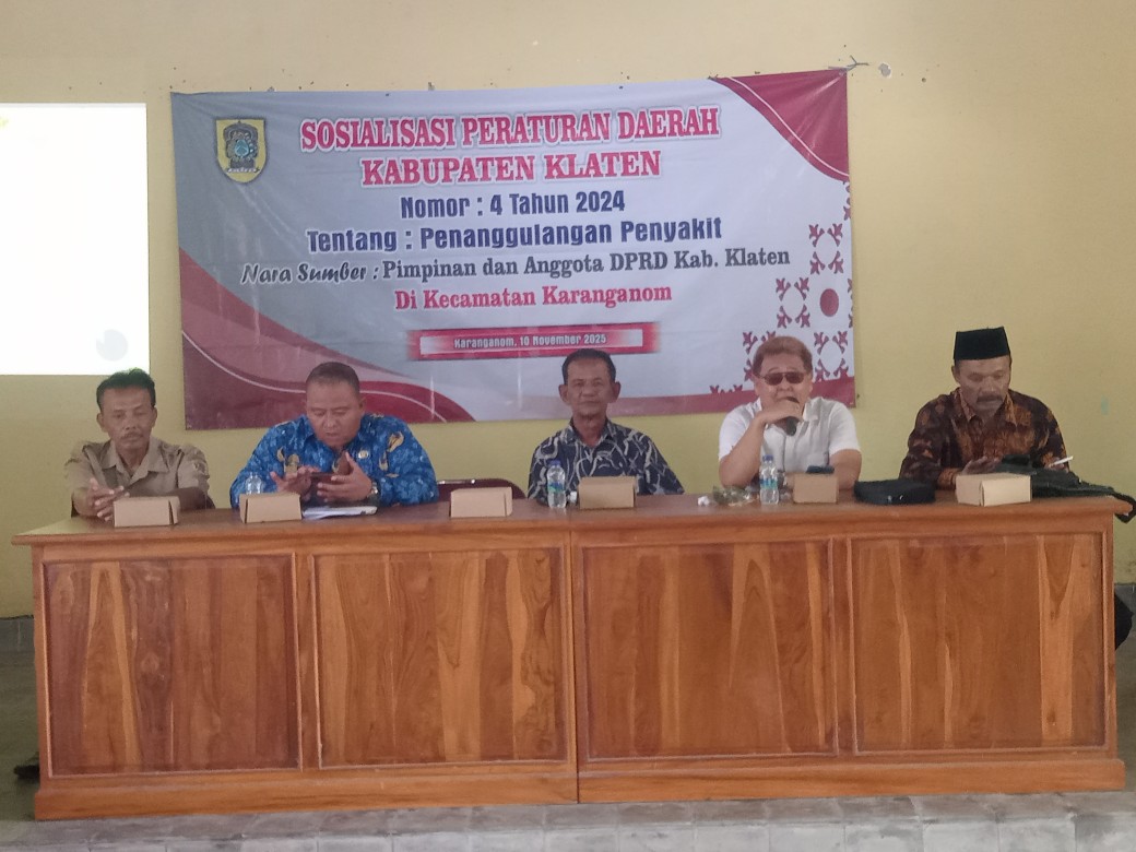 INDONNESIANEWS (Klaten)–Anggota DPRD Klaten, menggelar kegiatan Sosialisasi Peraturan Daerah No 4 Tahun 2024, tenang Penanggulangan Penyakit, di berbagai wilayah kecamatan di Klaten, Senin (10-11-2025).