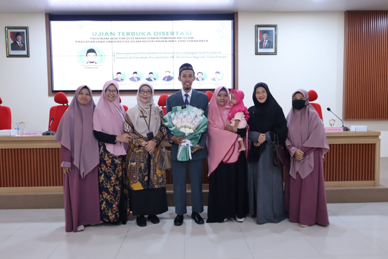 “Manajemen Pendidikan Karakter sebagai Self Control Santri di Pondok Pesantren Al Mukmin Ngruki, Sukoharjo” di hadapan tujuh orang Dewan Penguji Disertasi dan disaksikan puluhan tamu undangan, dengan nilai cumlaude 3,86.