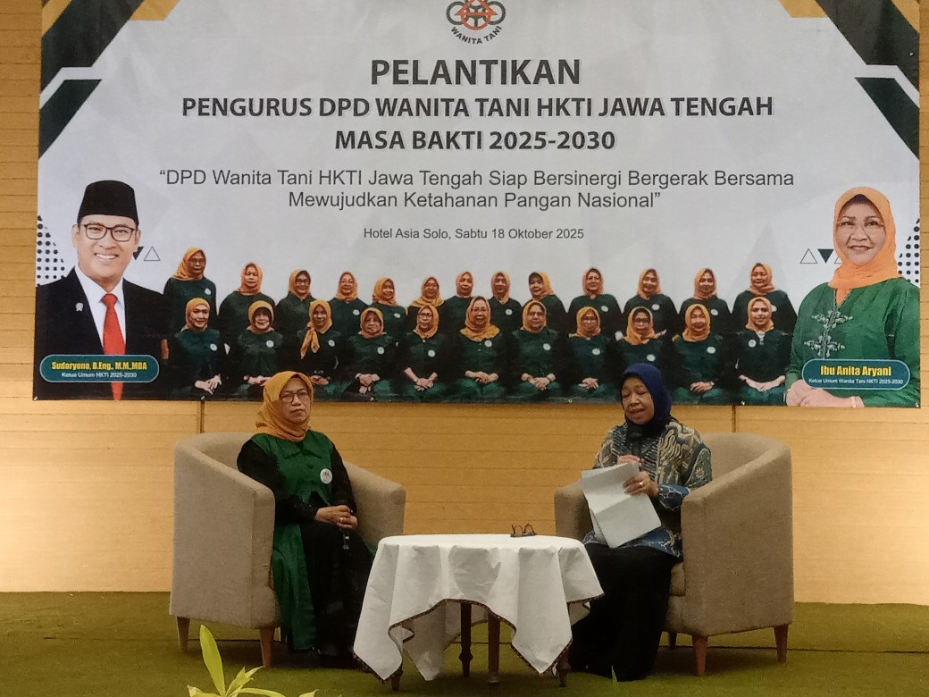INDONNESIANEWS (Solo)–Ketua Umum DPP Wanita Tani HKTI Indonesia, Anita Aryani, melantik pengurus baru Dewan Pimpinan Daerah (DPD) dan Dewan Pimpinan Cabang (DPC) Wanita Tani HKTI Jawa Tengah, di Hotel Asia, Sabtu (18-10-2025). Pelantikan ini menandai babak baru bagi organisasi wanita tani di Jawa Tengah untuk terus berkontribusi dalam sektor pertanian.