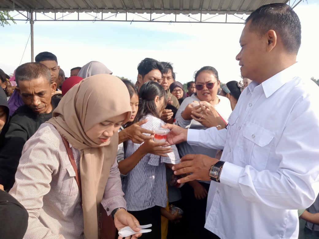 Salah satu ragam acara yang ditunggu pengunjung dari acara 1st HUT CFD desa Pandeyan yakni pembagian 500 porsi bubur sumsum, oleh Kades Pandeyan, Dwi Purboyono SH.,MH, bersama istri Hana Rini Hastutik, SH.. Mereka dengan tertib dan sabar maju untuk mendapatkan makanan tradisional Indonesia yang terbuat dari beras ketan, kuah santan dan gula merah yang dicairkan.