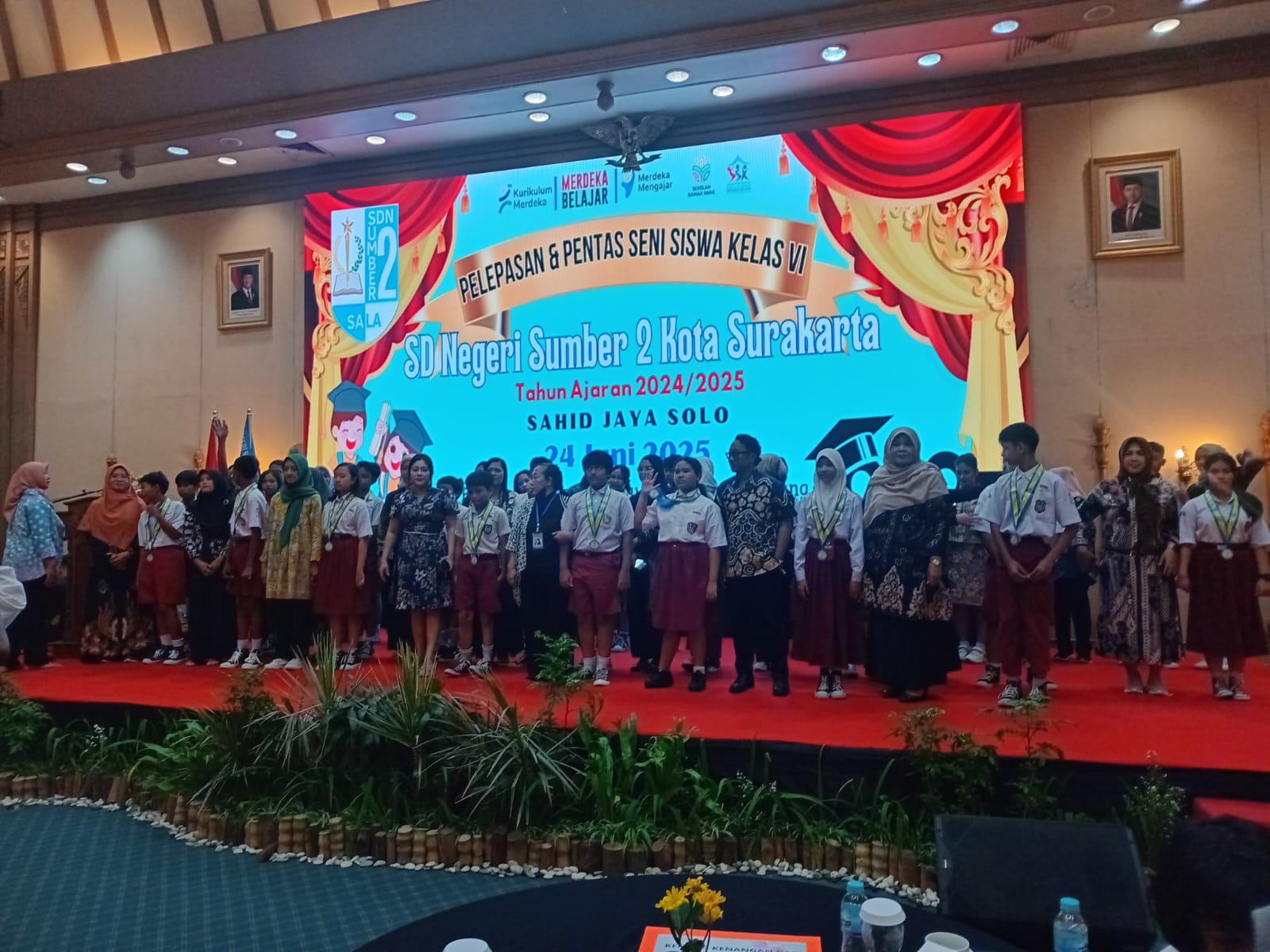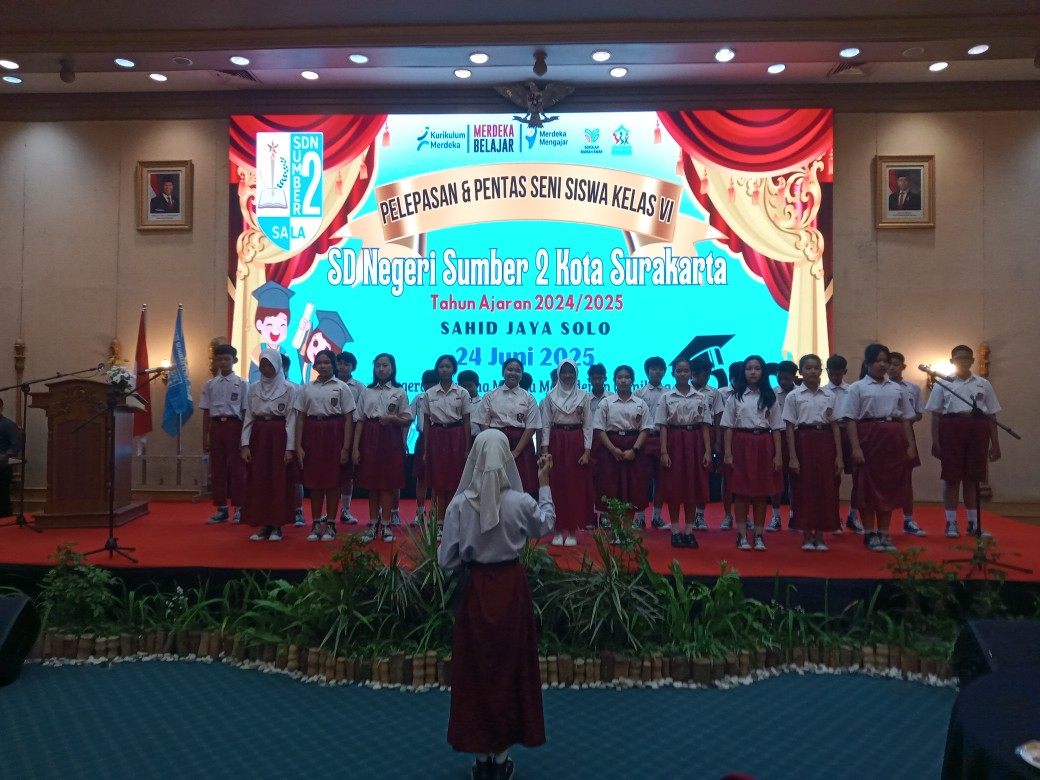 INDONNESIANEWS (Solo)–SD Negeri Sumber 2 Kota Surakarta menggelar acara Pelepasan & Pentas Seni Siswa Kelas VI di Ballroom Sahid Jaya Hotel, Solo, Selasa (24-6-2025) pagi. Acara ini dihadiri oleh Kepala SD Negeri 2 Sumber, Sri Indy Astuti, S.Pd., M.Pd., Lurah Sumber, Arifa Umiyati, SE, MM., Ketua Komite, Sri Kusmiati S.Sos., staf guru SD Negeri 2 Sumber, dan para wali murid siswa kelas VI.