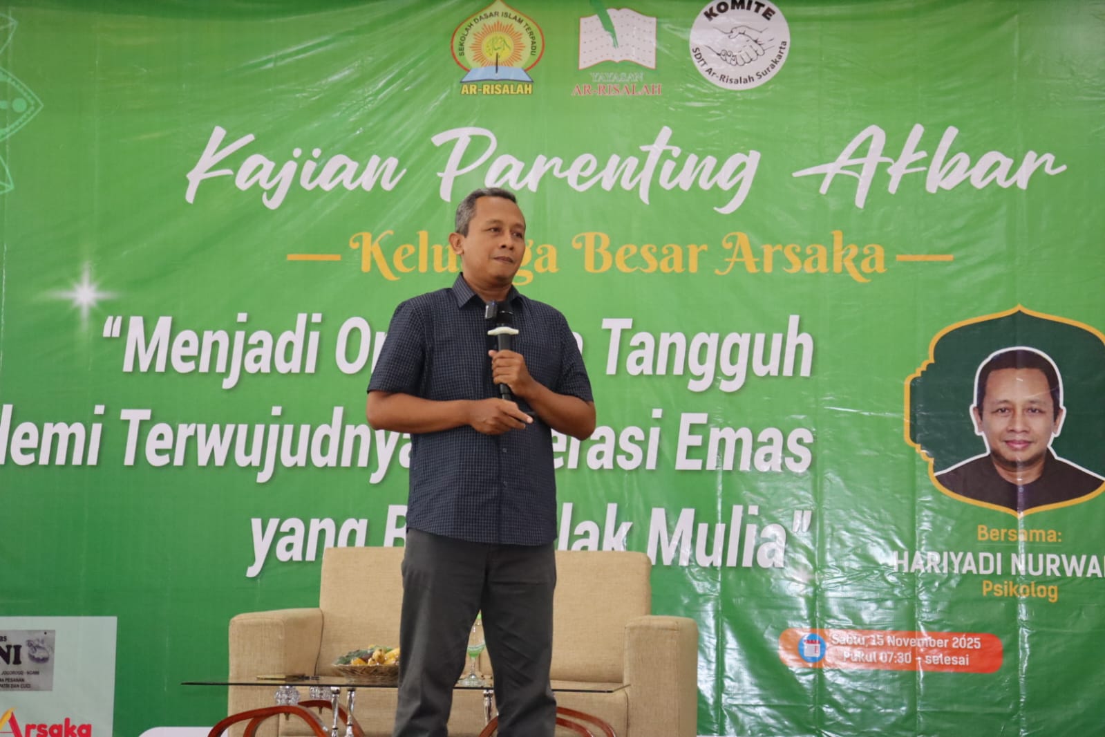 INDONNESIANEWS (Solo)–SDIT Ar-Risalah Surakarta kembali menyelenggarakan kegiatan Parenting Akbar sebagai bentuk komitmen dalam memperkuat sinergi antara sekolah dan orang tua dalam membentuk generasi yang berakhlak mulia. Acara yang terselenggara kerjasama antara komite dan sekolah ini dilaksanakan pada Sabtu, 15 November 2025, bertempat di Aula Darul Ashar PP Al Mukmin Ngruki, dan diikuti oleh seluruh wali murid ARSAKA.