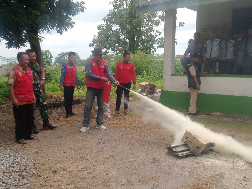 Selain materi peserta pelatihan dan bimtek linmas-relawan di desa Daleman juga melakukan praktek pemadaman api dan pelatihan baris berbaris.