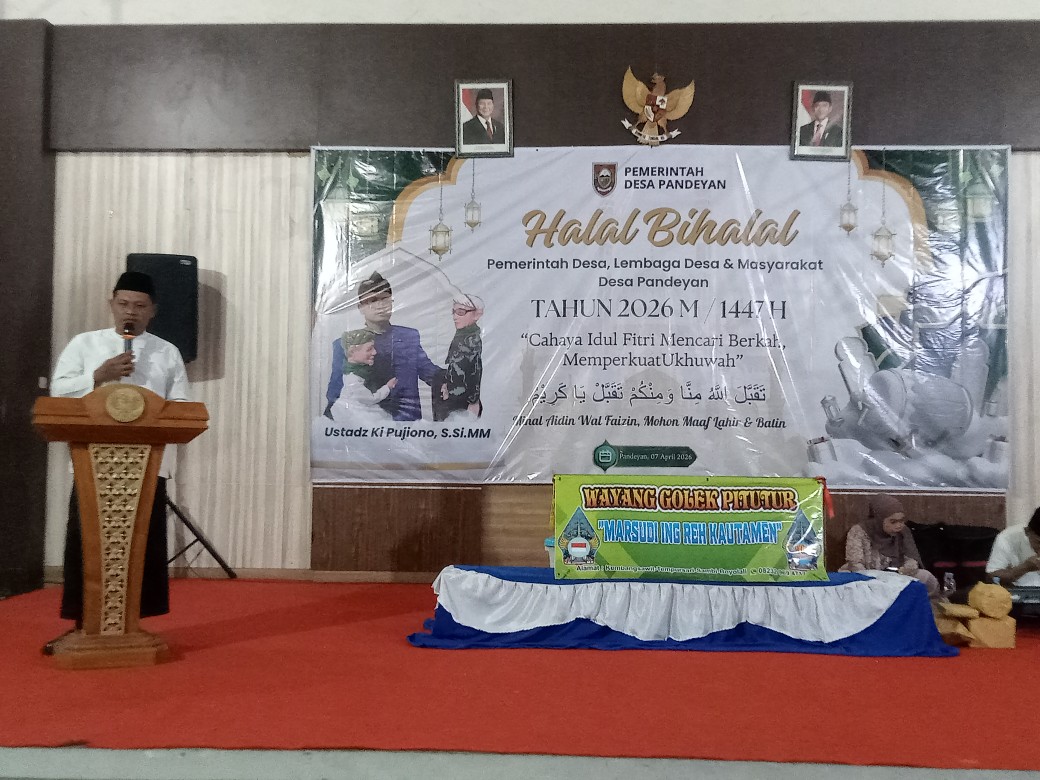 INDONNESIANEWS (Boyolali)–Pemerintah desa Pandeyan, Kecamatan Ngemplak, Boyolali, menggelar Acara Halal Bihalal bersama Pemdes, Lembaga desa dan Masyarakat desa Pandeyan tahun 2026 1447H, dengan tema “Cahaya Iedul Fitri Mencari Berkah, Memperkuat Ukhuwah”, di Aula desa setempat, Selasa (7-4-2026) malam.
