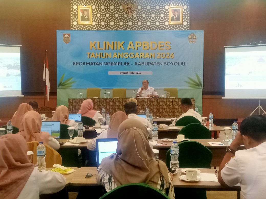 INDONNESIANEWS (Boyolali)–Pemerintah Kecamatan Ngemplak, Boyolali, Jawa Tengah, menggelar kegiatan Klinik APBDES 2026, di Fawaz Room, hotel Syariah Sukoharjo, Rabu (7-1-2026).