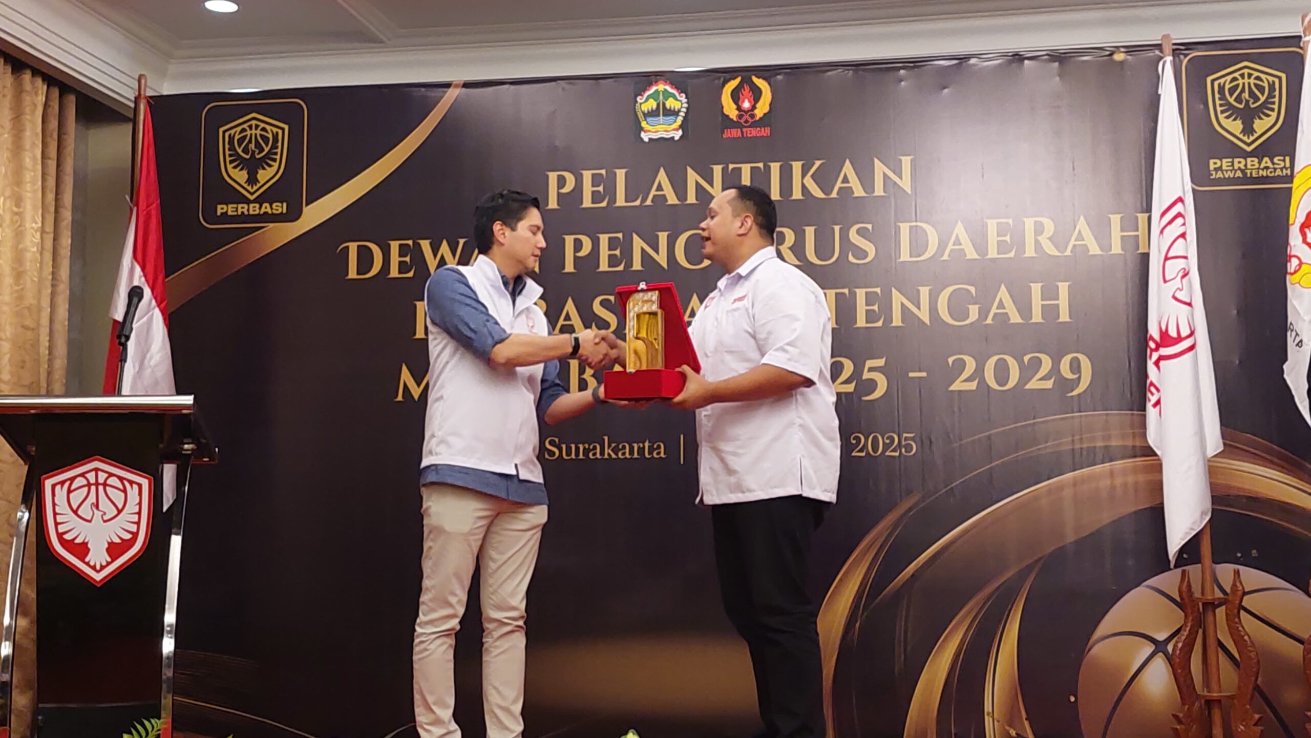 INDONNESIANEWS (Solo)–Pengurus Persatuan Bola Basket Seluruh Indonesia (Perbasi) Provinsi Jawa Tengah resmi dilantik oleh Pengurus Pusat Perbasi di Hotel Sunan Solo, Sabtu (25/10/2025) malam. Pelantikan dipimpin langsung oleh Ketua Umum PP Perbasi, Budi Djiwandono.