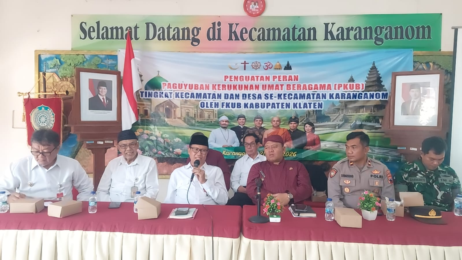 Hal itu disampaikan Syamsuddin Asyrofi saat memberikan pembinaan dan penguatan Paguyuban Kerukunan Umat Beragama ( PKUB ) Kecamatan dan Desa di Kecamatan Karanganom, Selasa ( 21/4/2026 ).
